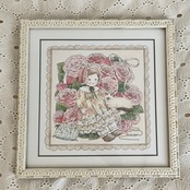 ドリーチークスという品種のバラをモチーフに描いた作品です。外側が濃ピンクで内側が薄ピンクの花びらを持つバラです。